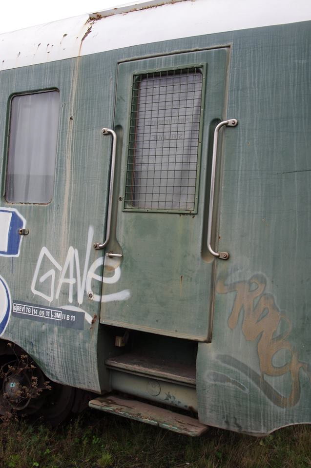Voici la voiture de cantonnement 80 87 979 3 624-8 Uass F SNCF-RO gare d'attache Caen Agence Logistique Engins Spéciaux