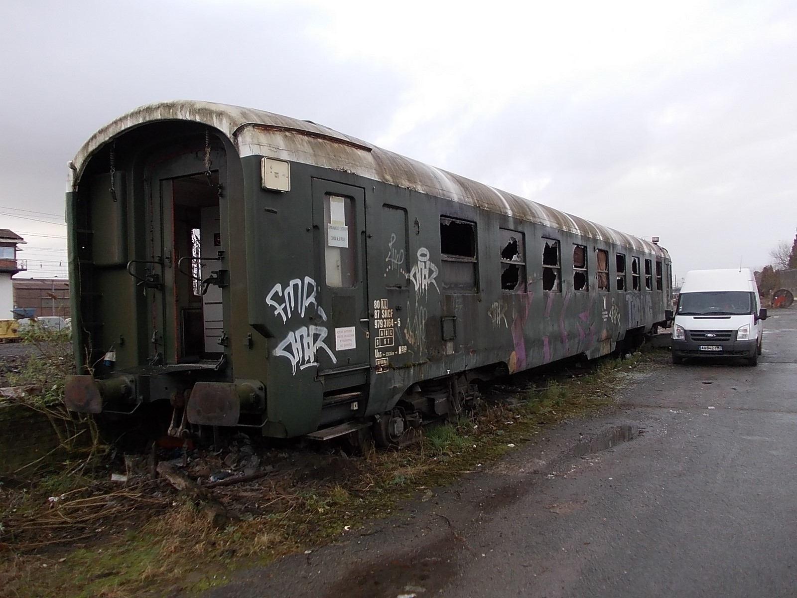 Cette voiture, depuis de nombreuses années stationnée en gare de Somain, a récemment été incendiée, sans doute par malveillance.