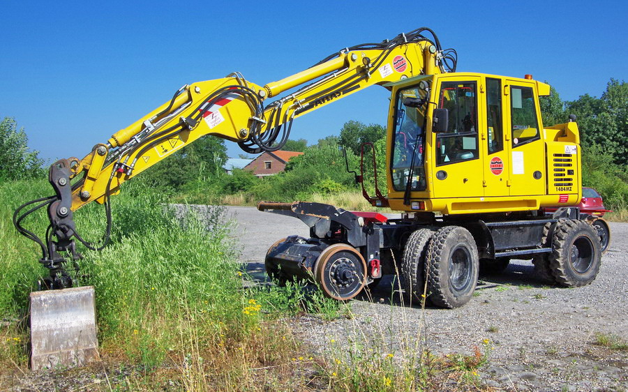 Voici la Pelle Rail route Atlas 1404 KZW n°241Z301929 de 2015 pour ETTB location TP n°460 avec marquage MZ