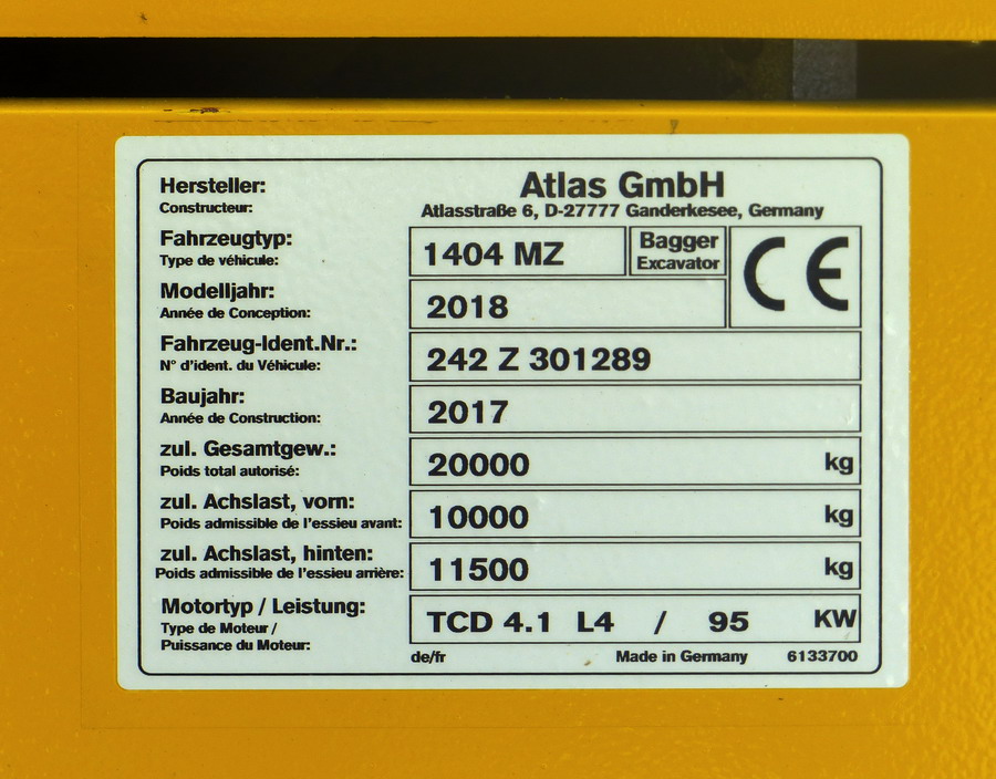 voici la Pelle Rail route Atlas 1404 MZ n°242Z301289 de 2017 - SFERIS 14
