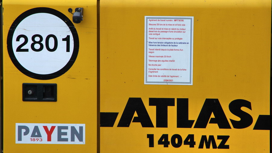 Atlas 1404 KZW n°241Z301939 - 2016 pour L'Heureux Rail à Reignac (37) n° de parc 2801 avec marquage MZ