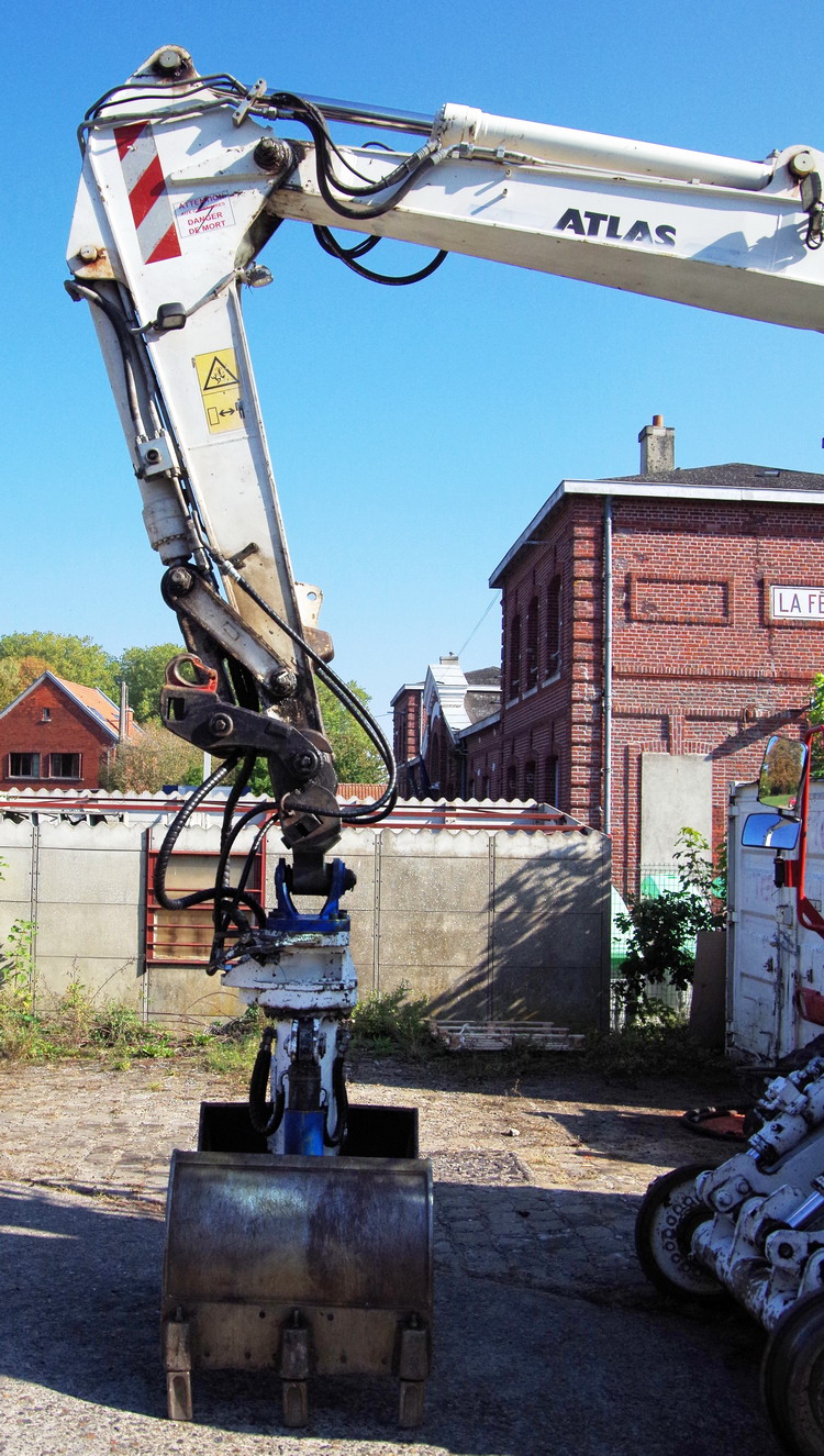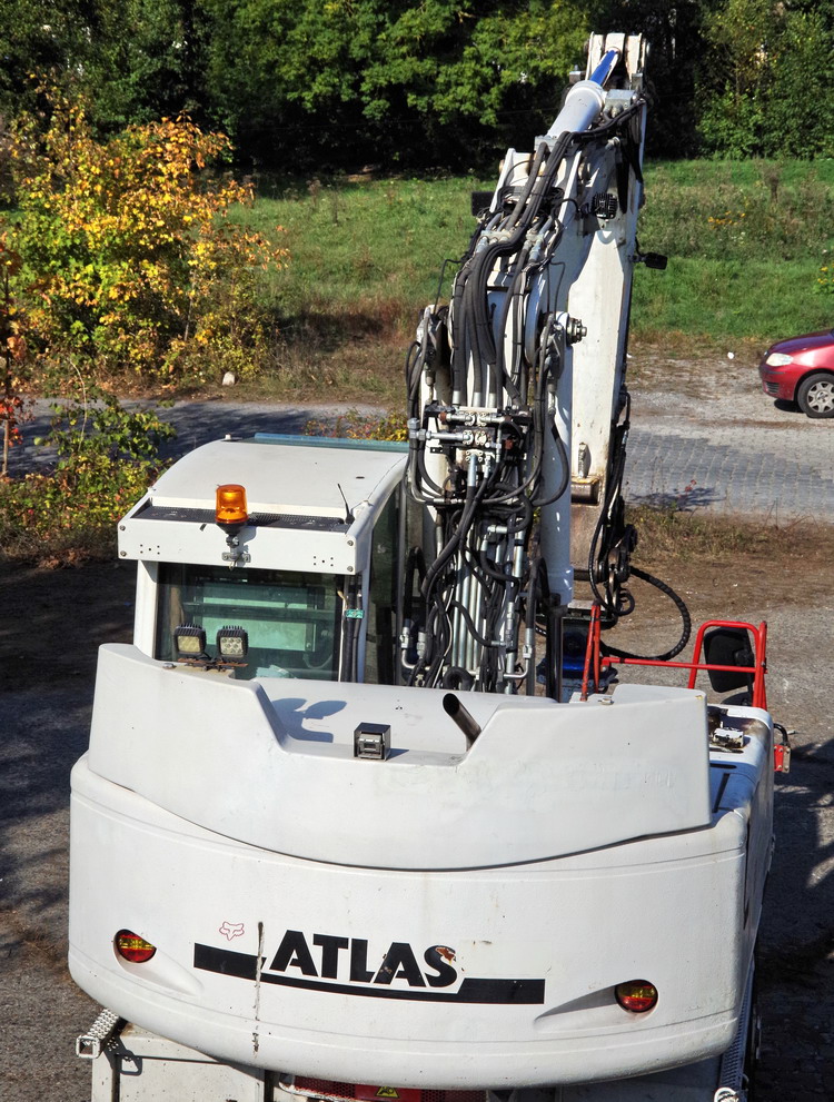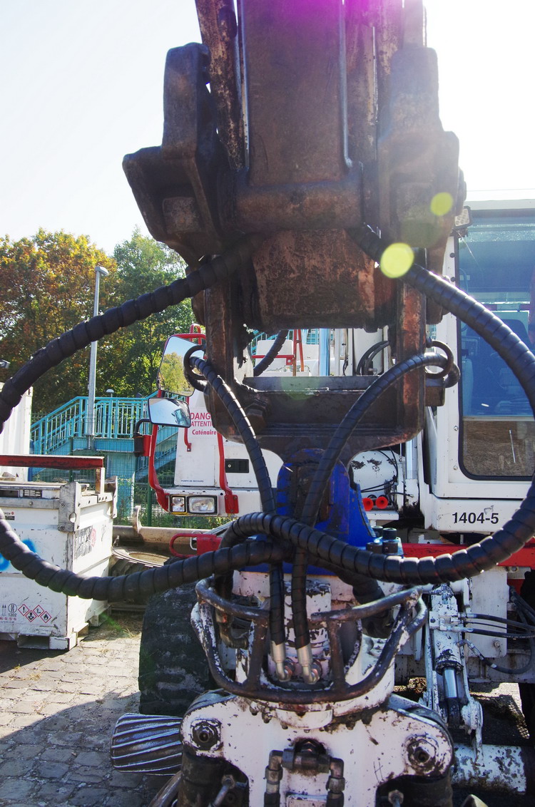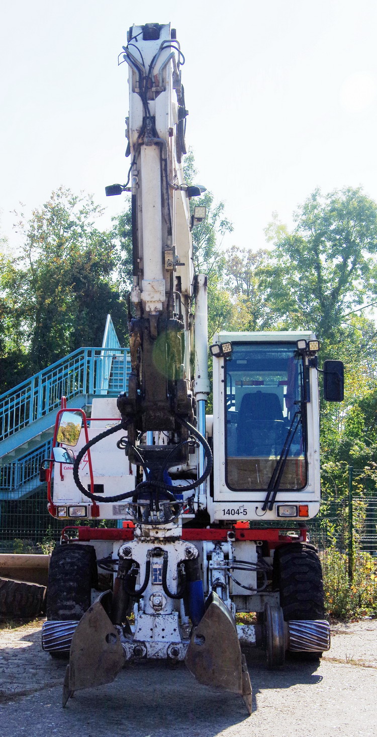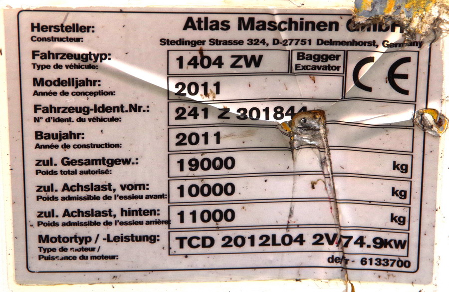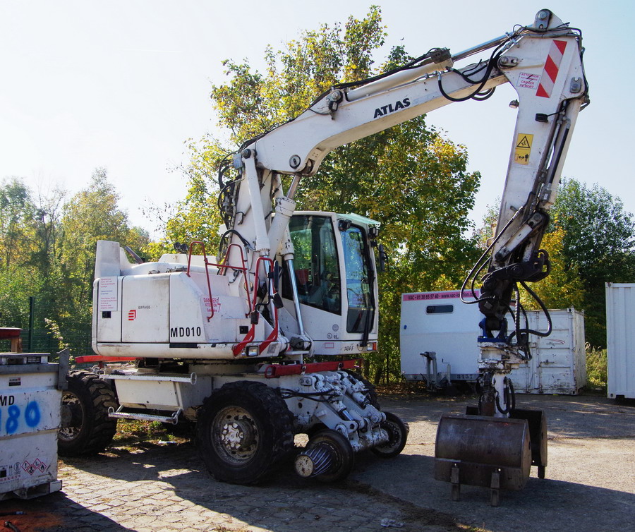 Voici la Pelle Rail route ATLAS 1404 ZW n°241Z301844 de 2011 d'Eiffage MD 010 une ex Pichenot Bouillet 1404-5