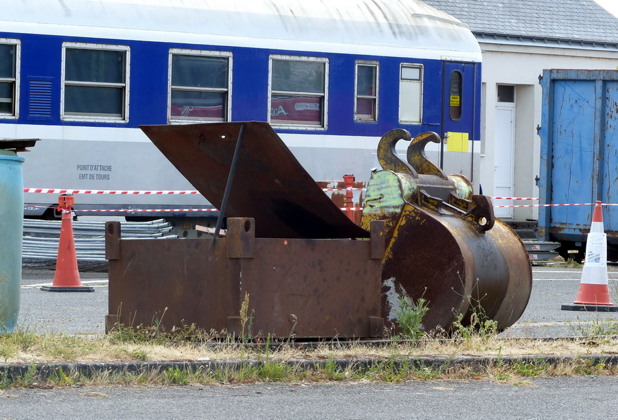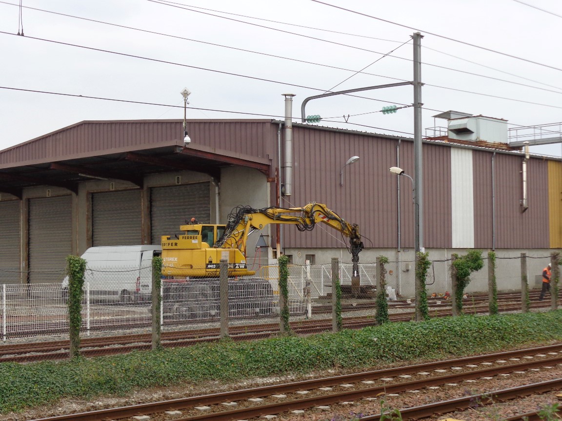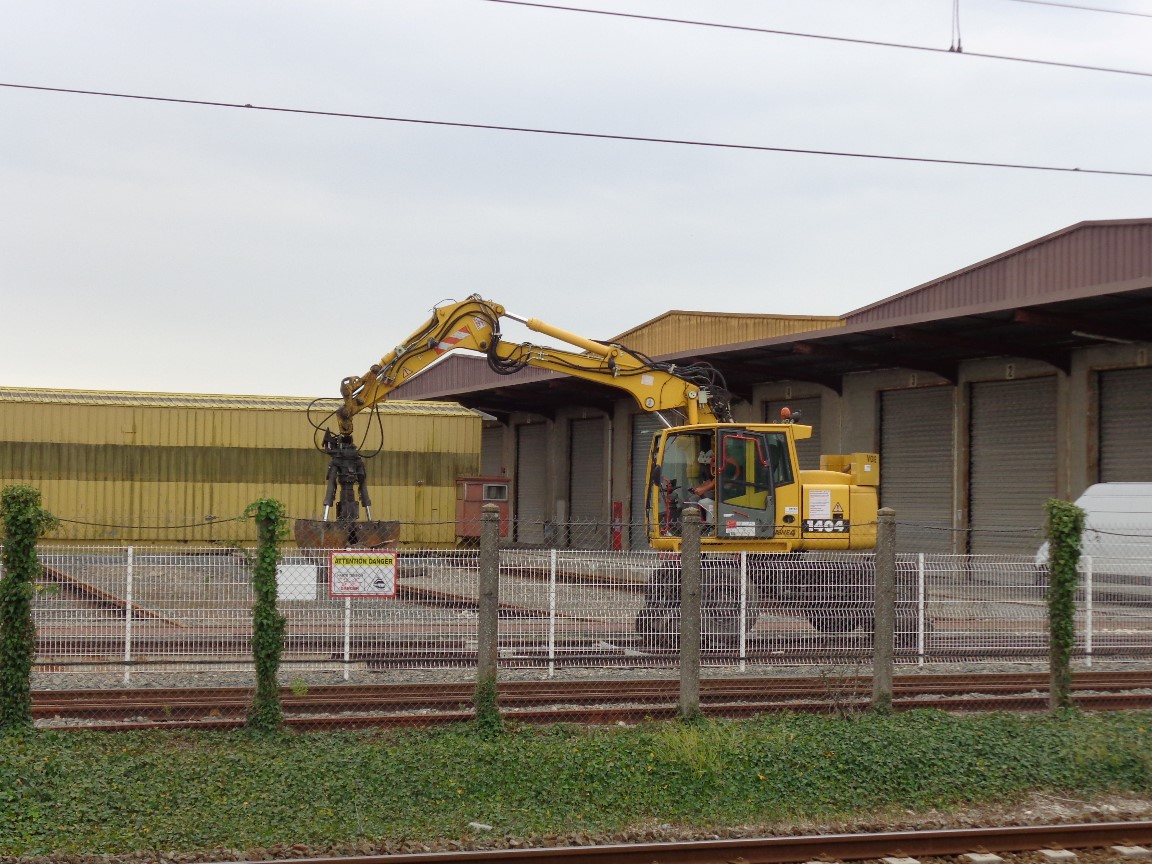 Bonsoir, le 27 Juillet 2014, des travaux ont été réaliser à Alstom Aytré, à côté de La Rochelle, sur une voie de garages pour les tramways et voitures de TGV (avant l'assemblage des rames) finis, j'ai pu prendre en photo la pelleteuse qui prenait des vieilles traverses.