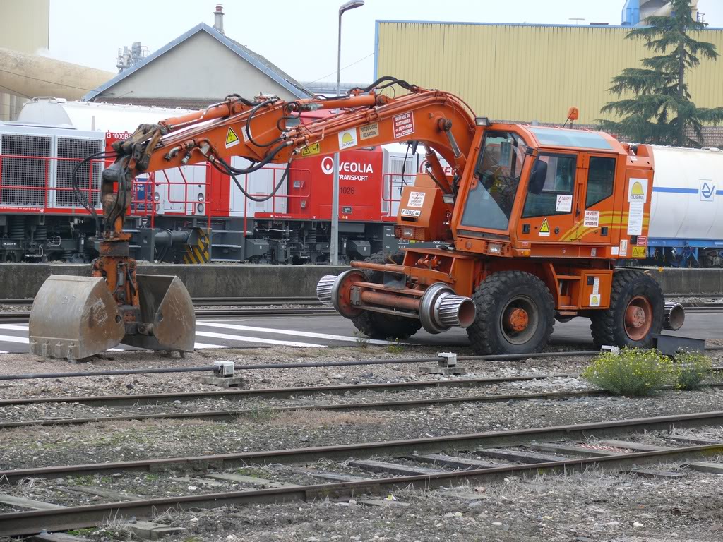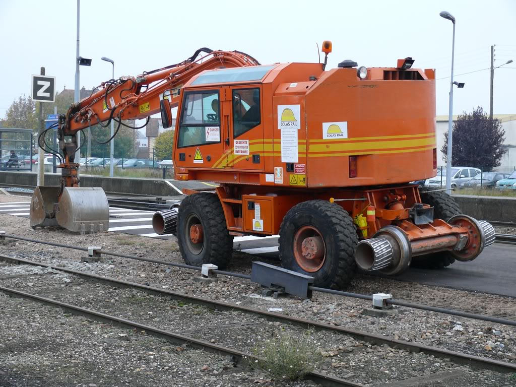 Voici une pelle Colas Rail en gare de Nangis. Elle intervient en ce moment au PN et en gare pour changer la voie, dans le cadre du RVB de Gretz à Romilly sur Seine.