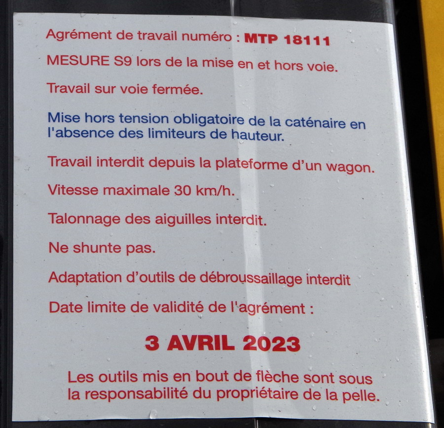 Agrément de travail MTP 18 111- 03 avril 2023 - N° de parc Colas Rail D 1003800
