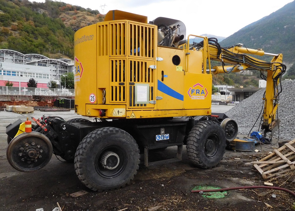 Revoici cette pelle quelques mois plus tard, à Charbonnières les Bains dans le cadre des travaux sur la ligne 782 000 des tram-train de l'Ouest lyonnais :