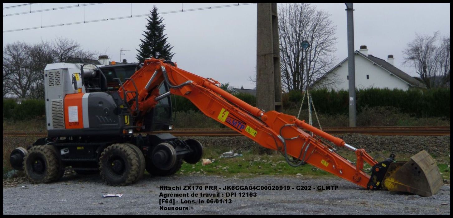 Voici la Pelleteuse Hitachi D 2R de Type ZX170 PRR n°JK6CGA04C00020919-C202 de CLMTP (DPI 12 163 - novembre 2017)