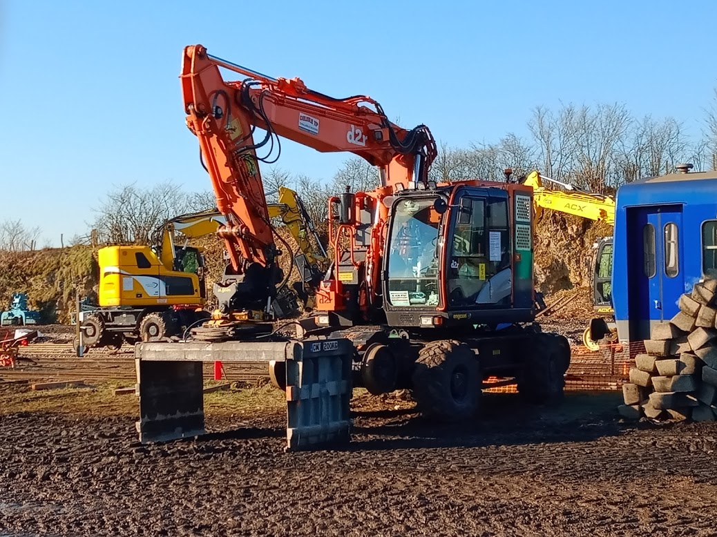 Revoici cette Pelle en gare du Lioran cette fois-ci, dans le cadre des travaux du CPER Aurillac-Arvant en Juillet 2022 :