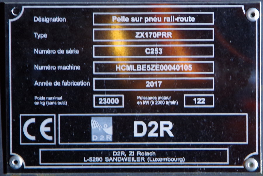 Voici la Pelle Rail route D2R de type ZX170PRR n°HCMLBE5ZE00040105 série C253 de 2017 pour Meccoli