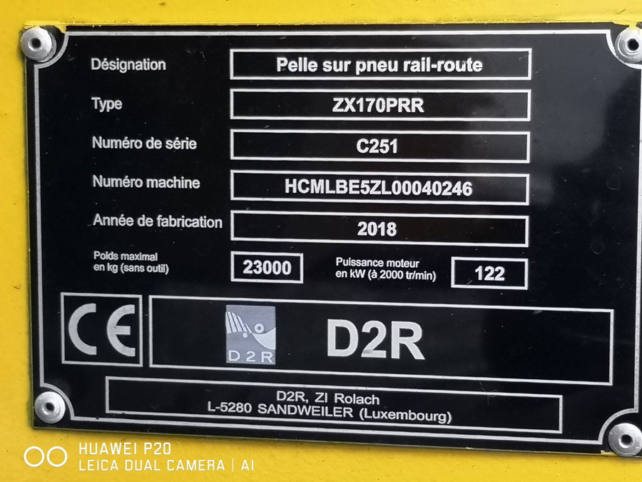Voici une nouvelle Pelle Rail route Hitachi D2R ZX170 PRR n°HCMLBE5ZL00040246 série C 251 - 2018