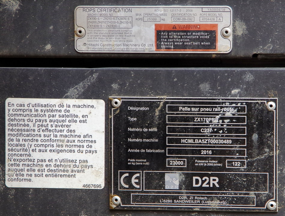 Voici une nouvelle : Hitachi D2R - ZX170 PRR n°HCMLBA5ZT00030489 série C237 - 2016 ENCO