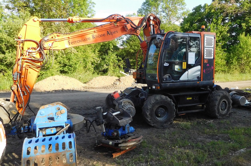 Une petite nouvelle croisée à Saint-Jodard en Avril 2022 lors des travaux de voie sur la ligne 750 000 entre Saint-Etienne et Roanne :