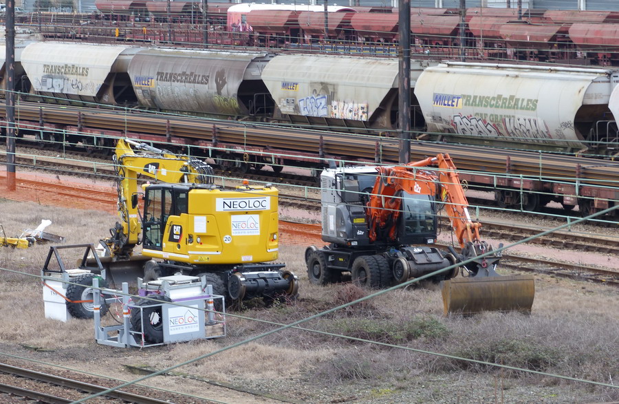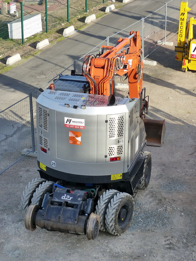 sur le chantier de la gare de SPDC (37) avec une autre Pelle Hitachi d2r ZX 170 PRR d'Aquitaine Rail n°1 des photos sur le lien