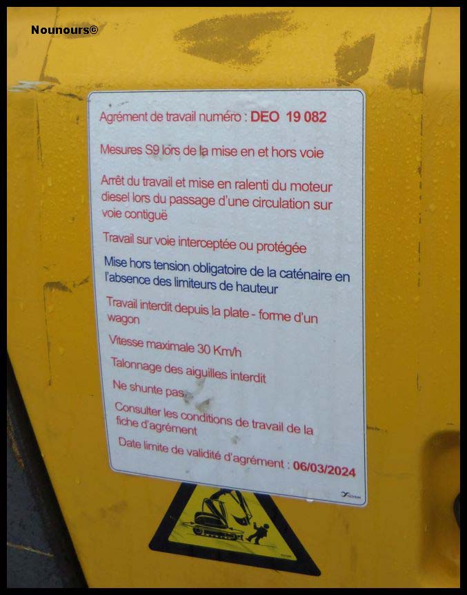 la plaque est derrière un des essieux ferroviaires et il faut attendre que la pelle soit en position haute pour la découvrir