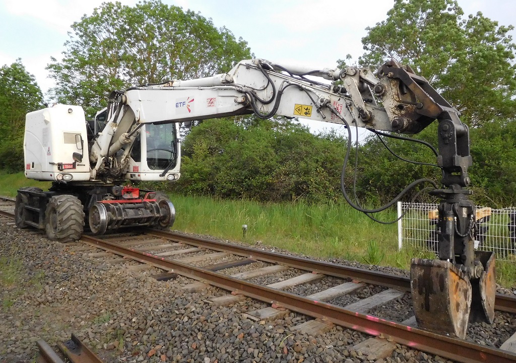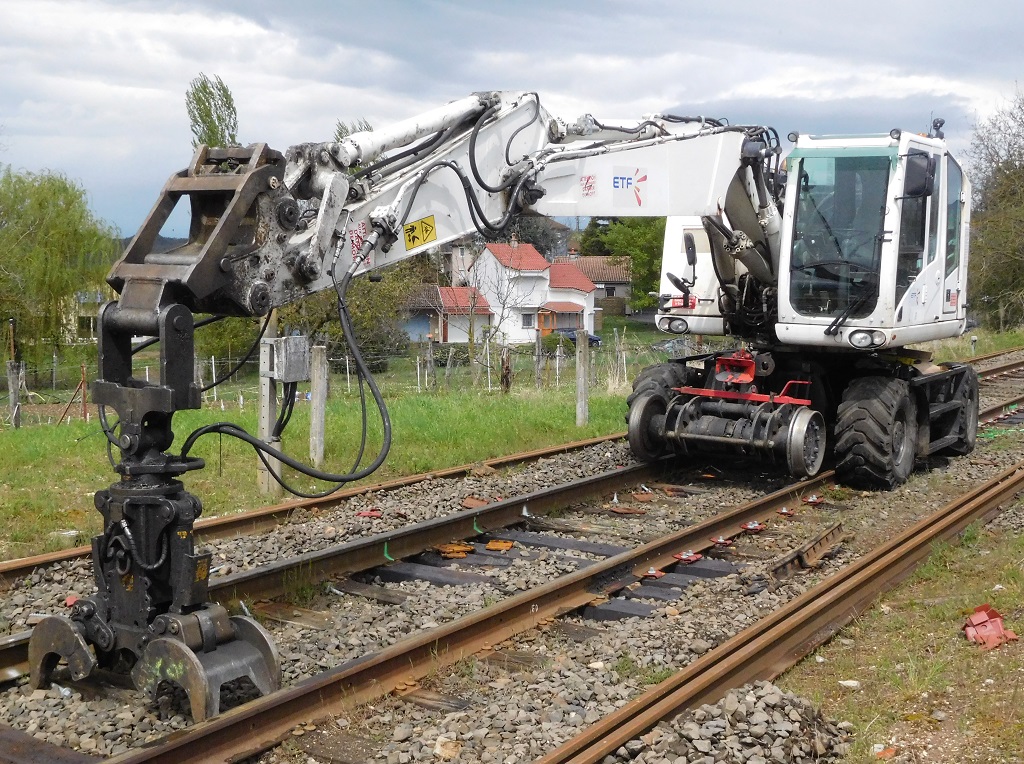 Après plusieurs années de service, on la retrouve sur un chantier de remplacement de traverses sur la ligne de l'Aubrac en Août 2021.