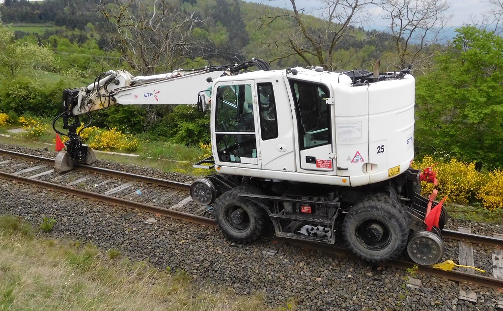 Après plusieurs années de service, on la retrouve sur un chantier de remplacement de traverses dans le cadre du CPER Saint-Georges-d'Aurac - Le Puy-en-Velay :