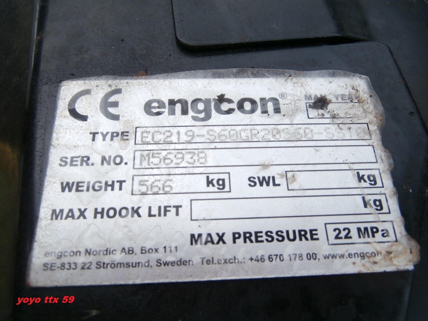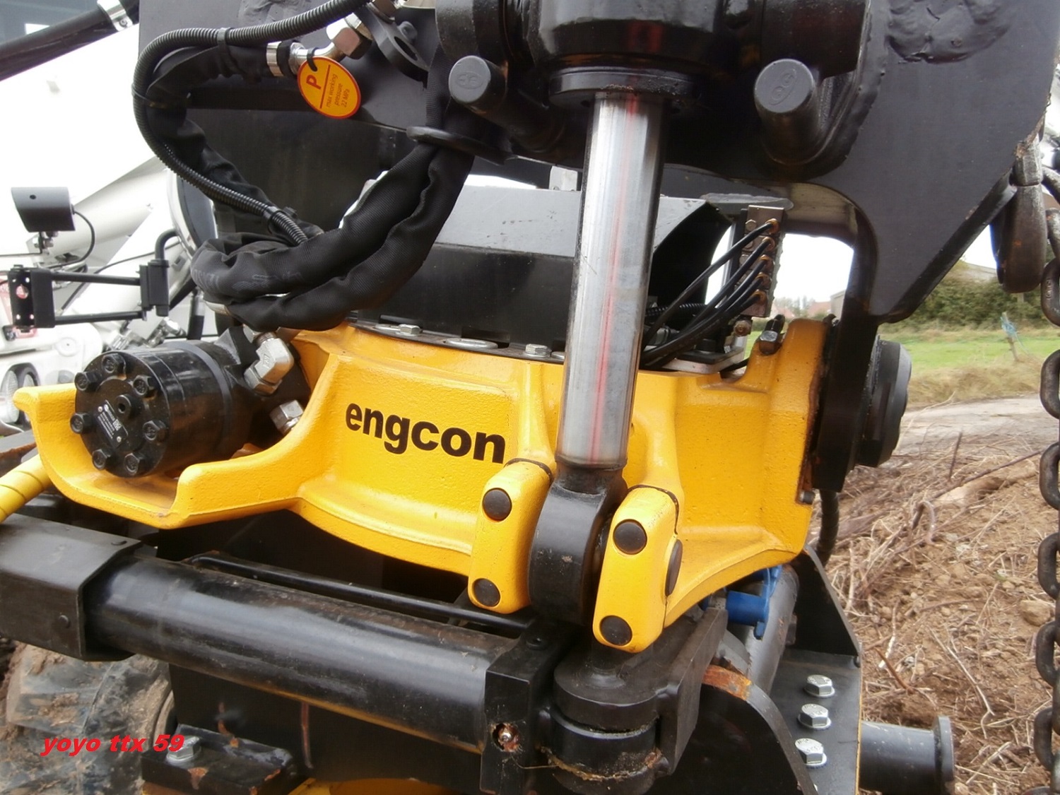 Voici un petit matériel qui équipe une pelle UNAC 22 TRR chez ETF .Je ne sais pas si il s'agit d'un Tiltrotator , mais c'est du ENGCON de type : SK15960 ( plaque sur la partie basse ) .Photos prisent le 11/10/2014 a Hazebrouck sur le chantier de changement d'appareils de voies au niveau du poste 2 :Plaque sur la partie basse :Plaque sur la partie haute :Et voila .