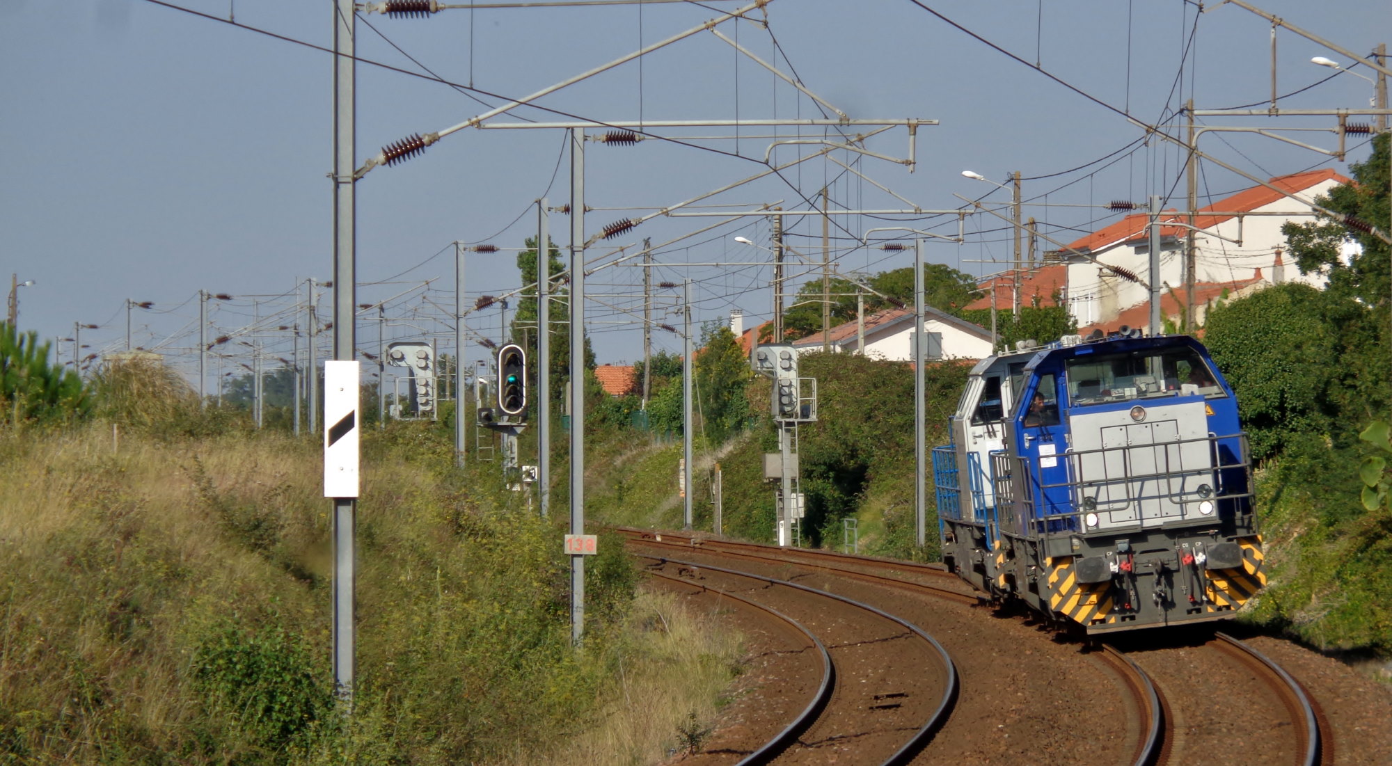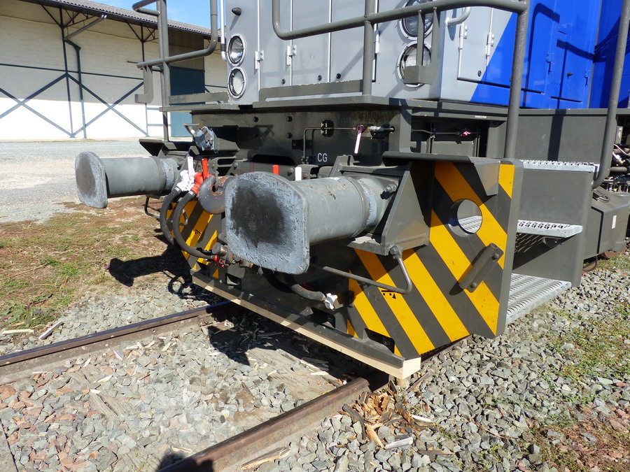 A l'autre bout de la même rame, une autre G1000 Vossloh de Ferrotract, la 1596 (ex location) en livrée bleue et cabine blanche (n° 92 87 0 001 032 7) :