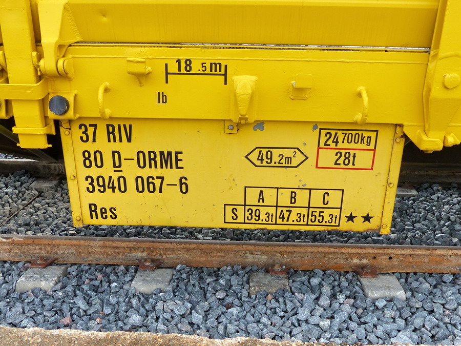 Voici le wagon 37 80 3940 067-6 Res RIV D-ORME de la société On Rail Gmbh (Allemagne) pour la société de location de wagons M.F.I sa (Matériel Ferroviaire et Industriel) de Strasbourg qui est une société spécialisée dans l'achat-vente, la location,