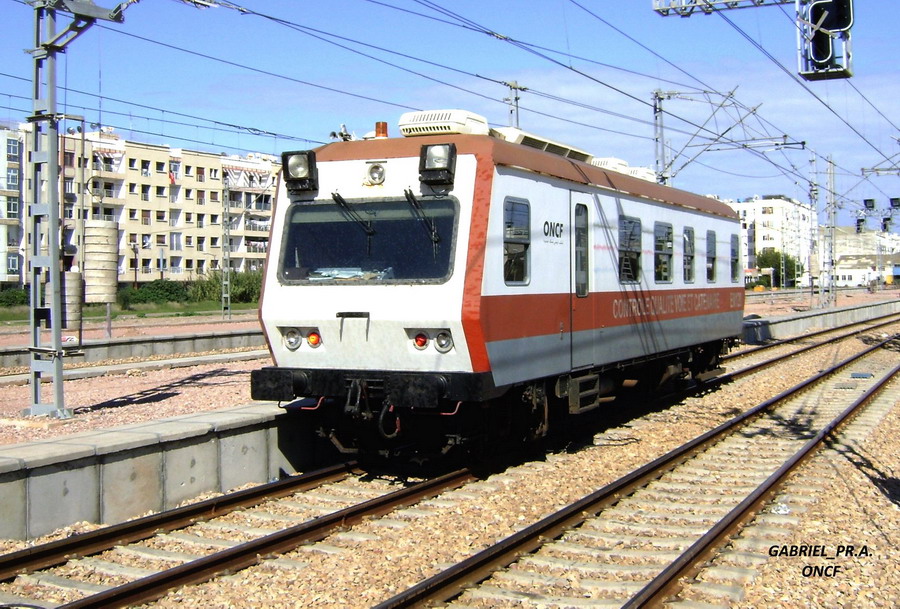Voici un automoteur de Plasser & Theurer EM 120 (Voiture d'enregistrement de l'état de la voie) de l'ONCF (L’Office national des chemins de fer du Maroc)