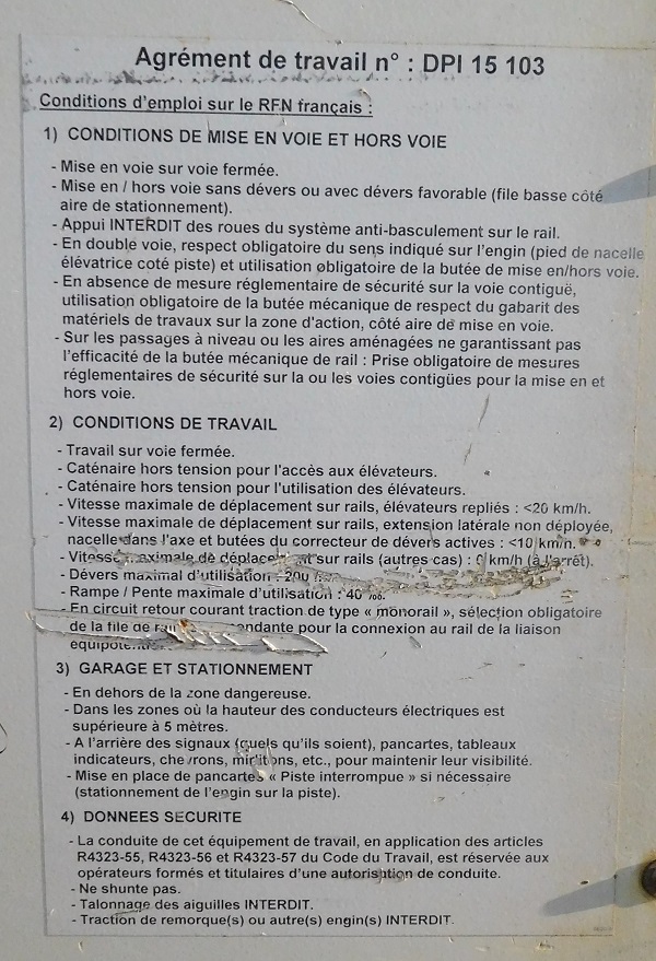 La fiche identification de l'engin sur le chantier :