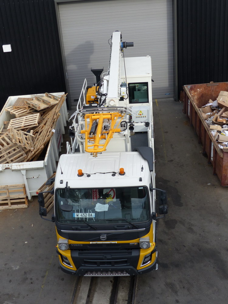 Voici le camion Volvo 330 FMX - W-998-HP (37) avec le Module grue A3772-A - B739274 - Socofer n°909 - 2016 à la Socofer de SPDC avant de partir