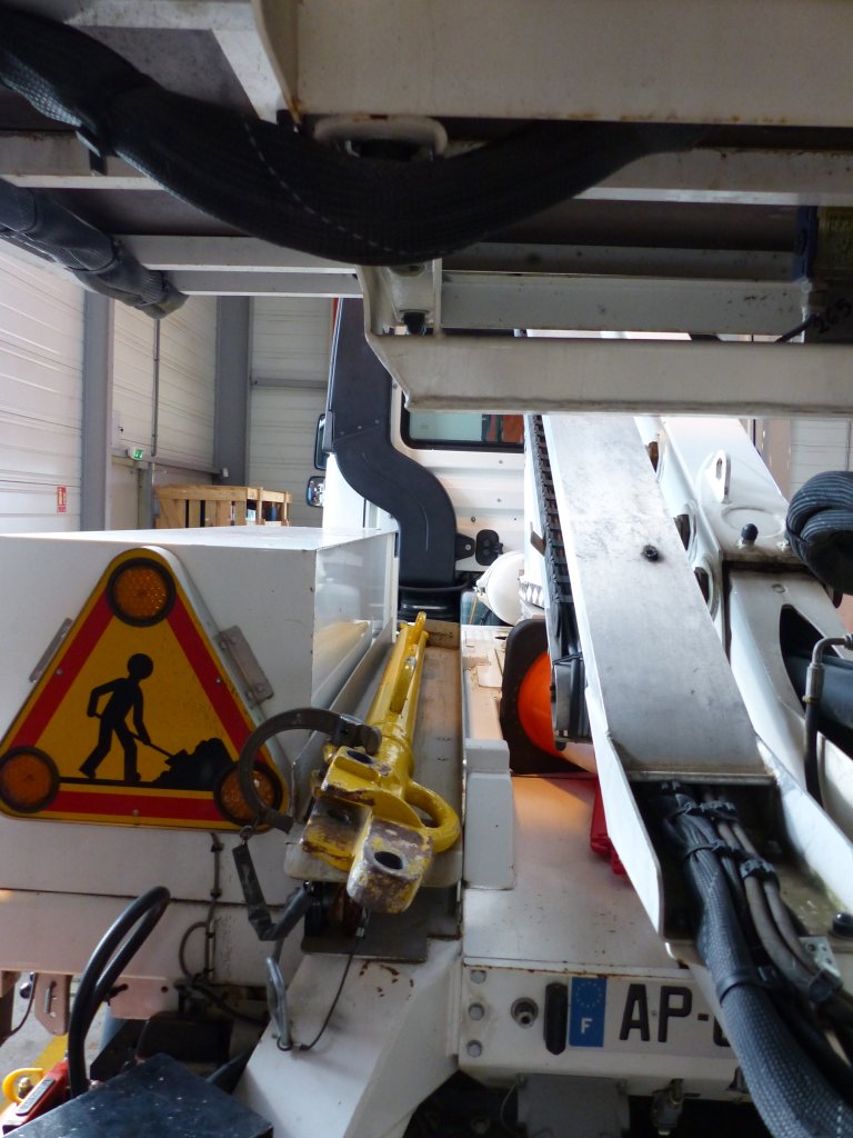 Il est équipé pour le soutien en cas de problème autre : outillage, groupe électrogène, grue Hiab 017T.