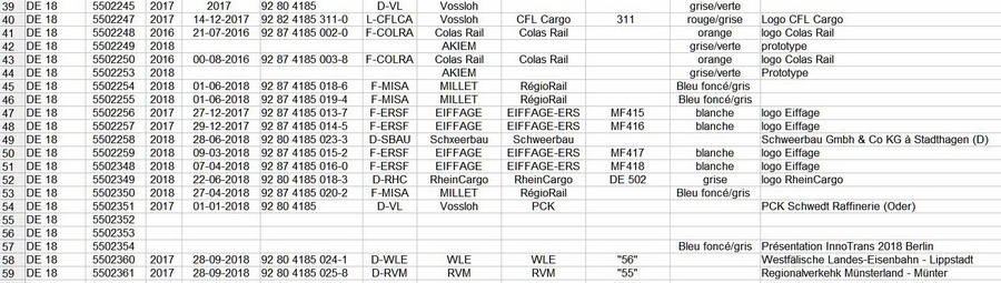 et la liste de toutes les DE 18 en sortie d'usine Vossloh