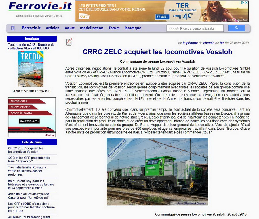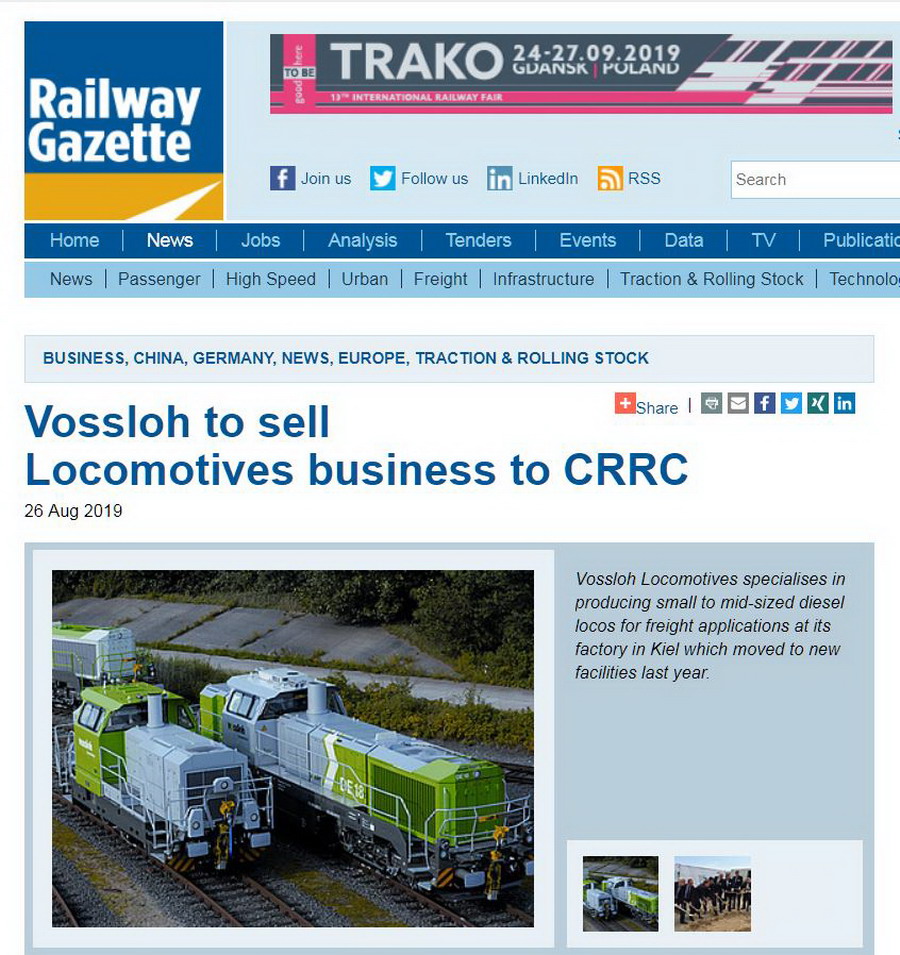 Vossloh Locomotives est la première entreprise qui CRRC ZELC dans L'Europe prend le relais. Il devrait s'agir "de toutes ses filiales"