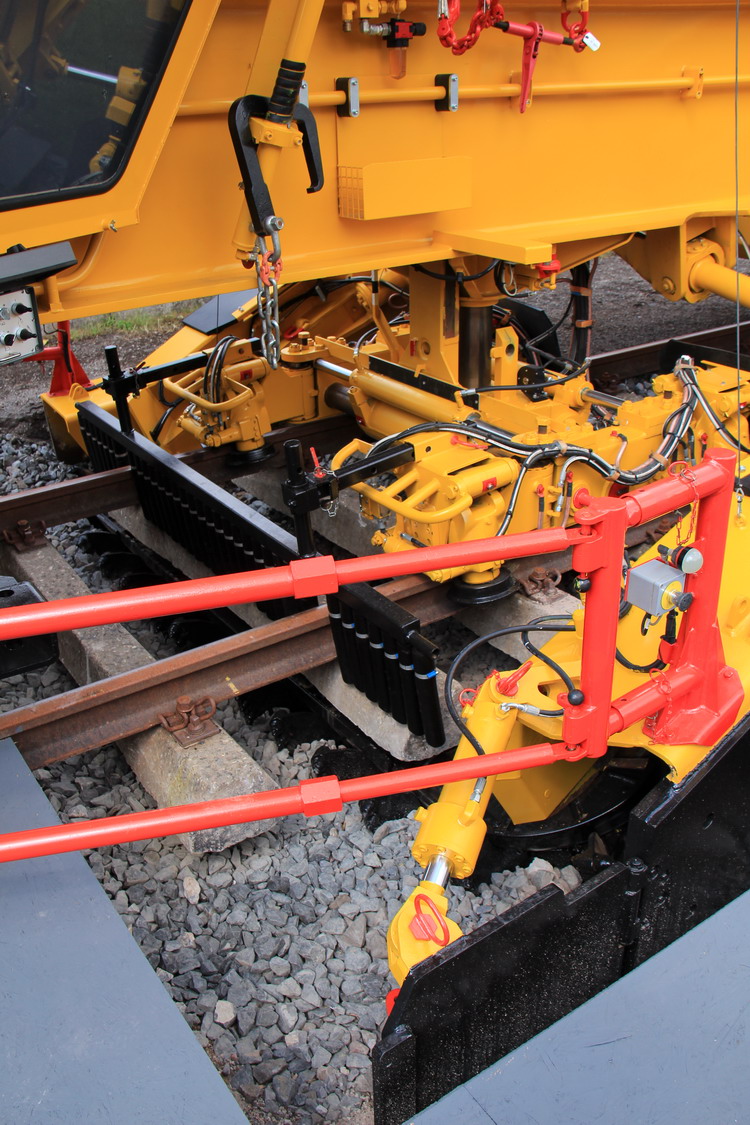 Certains détails de la nouvelle machine ont été redessinés. Cela a permis de réduire le poids de la machine d'env. 3 t. Les détails du contrôleur de programme et en particulier du système hydraulique ont été améliorés. La chaîne d'excavation (boîte de transmission à chaîne) est maintenant équipée d'une boîte de vitesses à deux vitesses et d'une pompe d'entraînement réglable en continu (0 à 100%). Par conséquent, l'excavation peut être ajustée plus précisément et il y a plus de puissance disponible. La charrue pour un nouveau ballast est sécurisée grâce à des crochets pneumatiques.