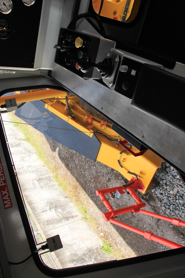 Le RM 85-750 entièrement hydraulique est une machine de nettoyage à ballast pour un fonctionnement sur pistes et aiguilles. La machine est construite dans une conception articulée et se compose d'une excavatrice couplée à une unité de propulsion. Six de ses huit essieux (quatre bogies à deux essieux) sont alimentés par voie hydrostatique pendant les déplacements et les déplacements de travail.