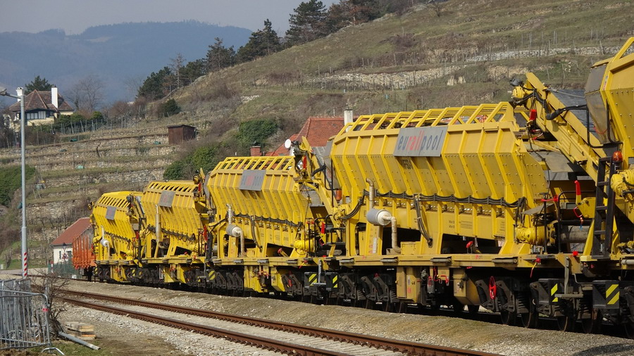 Dégarnisseuse RM 80-92 - NL-RTS 99 84 9414 602-5 Swietelsky en gare de Dürnstein (A) le 25-03-2018
