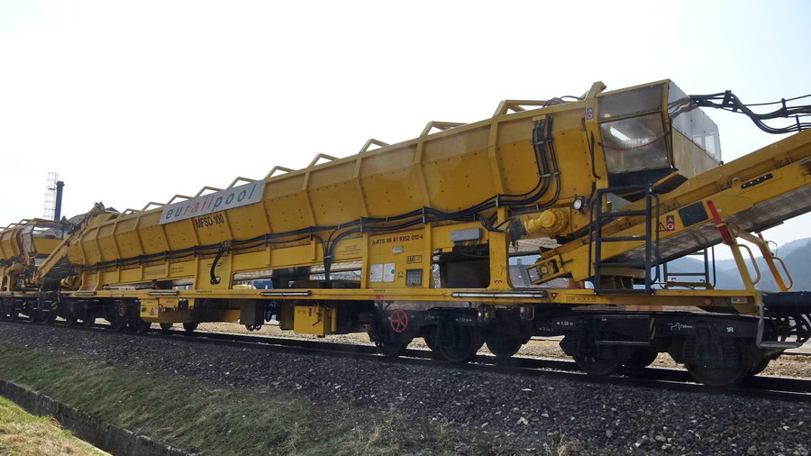 wagon MFSD 100 Wagon auto-stockeur et déchargeur Eurailpool dont les A-RTS 99 81 9352 012-4 Eurailpool