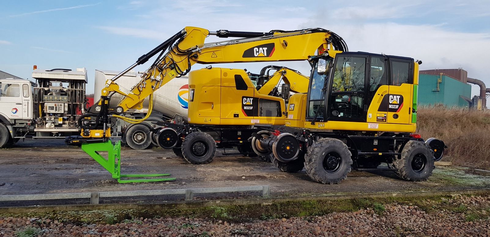 Cette dernière faisant partie des 5 machines de pré-production UNAC, elle n'est pas badgé CATERPILLAR, mais elle reste une cousine assez proche des CAT M323f.