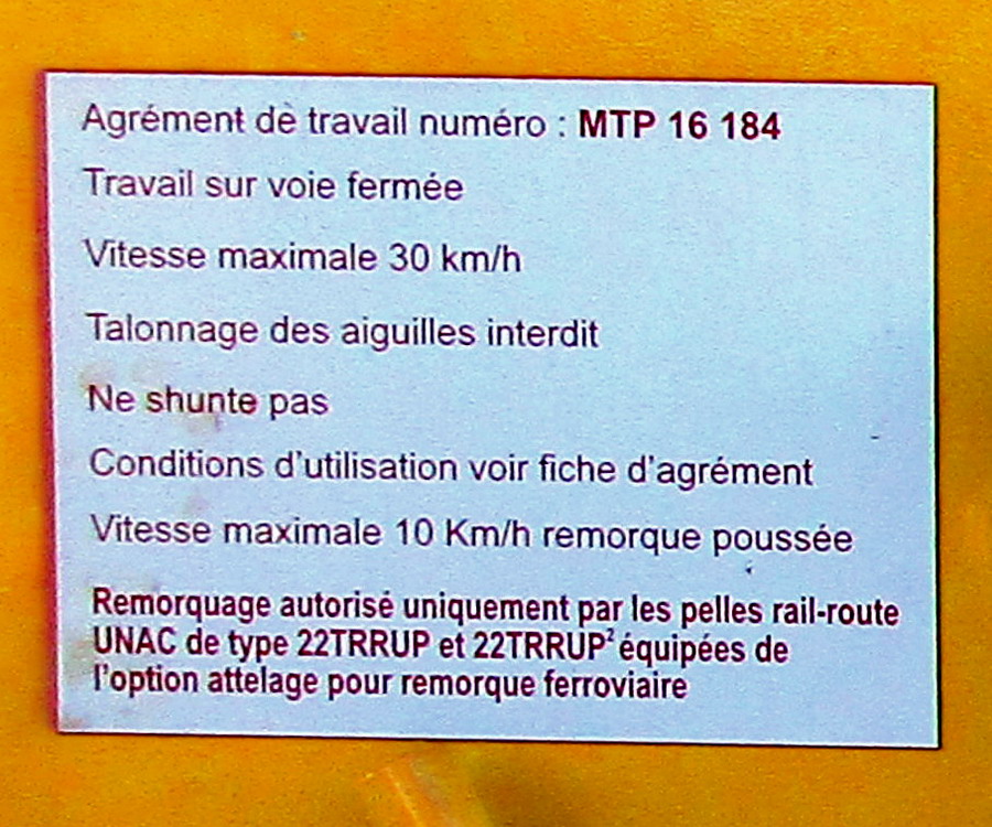 pour pelle Rail route UNAC 22TRR UP et 22TRR UP2 équipées de l'option attelage pour remorque ferroviaire