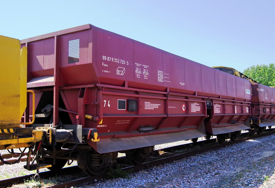 Le wagon trémie FALNS - 99 87 9 352 725-5 - TR n° 74 à droite