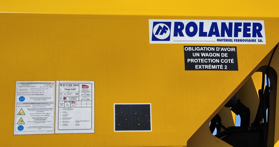 Voici le wagon Trémie EXBT - 99 87 9 352 738-8 - TR n°04 de Transalp Renouvellement (construceur ROLANFER 2019)