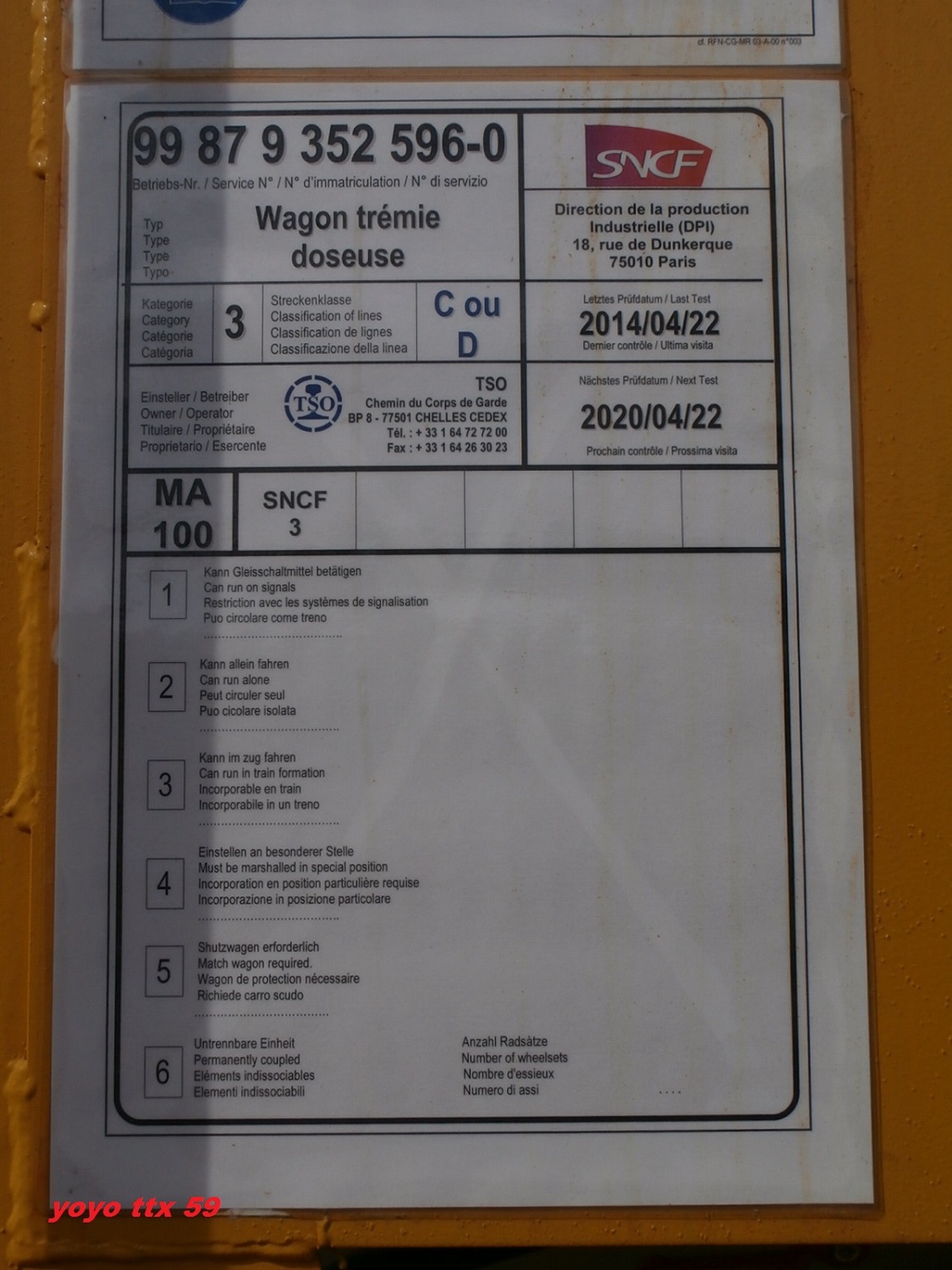 Wagon trémie doseuse - 99 87 9 352 596-0 - TSO