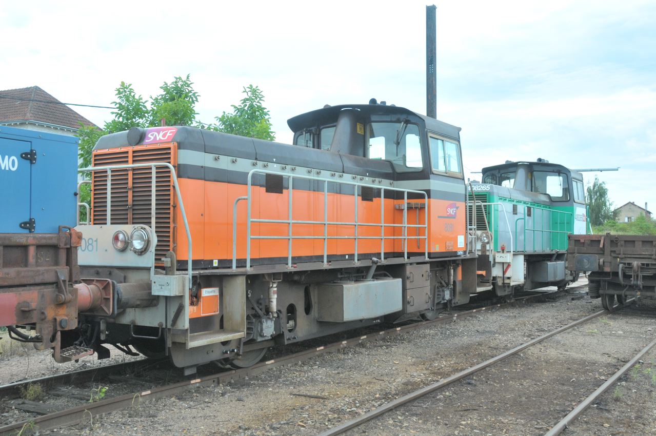 Voici le Y 8081 Infra sans le logo en livrée Arzens avec le Y 408265 Infra en livrée Fret à SPDC le 07-08-2014