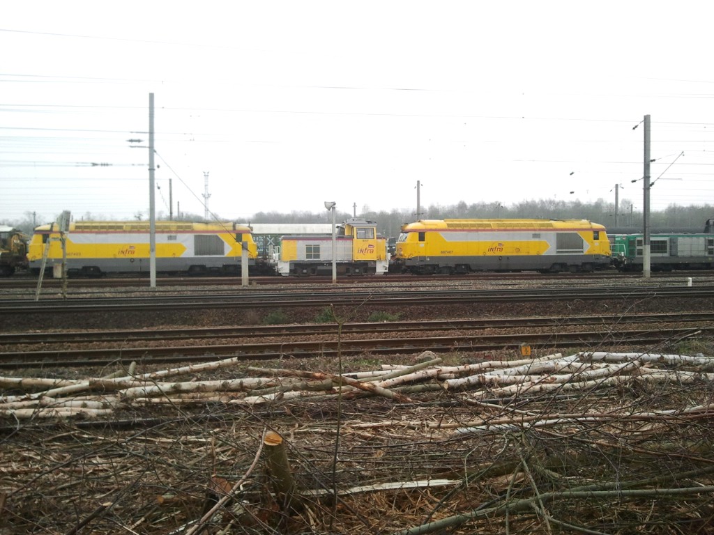 Le voici en manœuvre sur la zone de garage des rames Infra à Saint Pierre des Corps le mercredi 12-11-2014