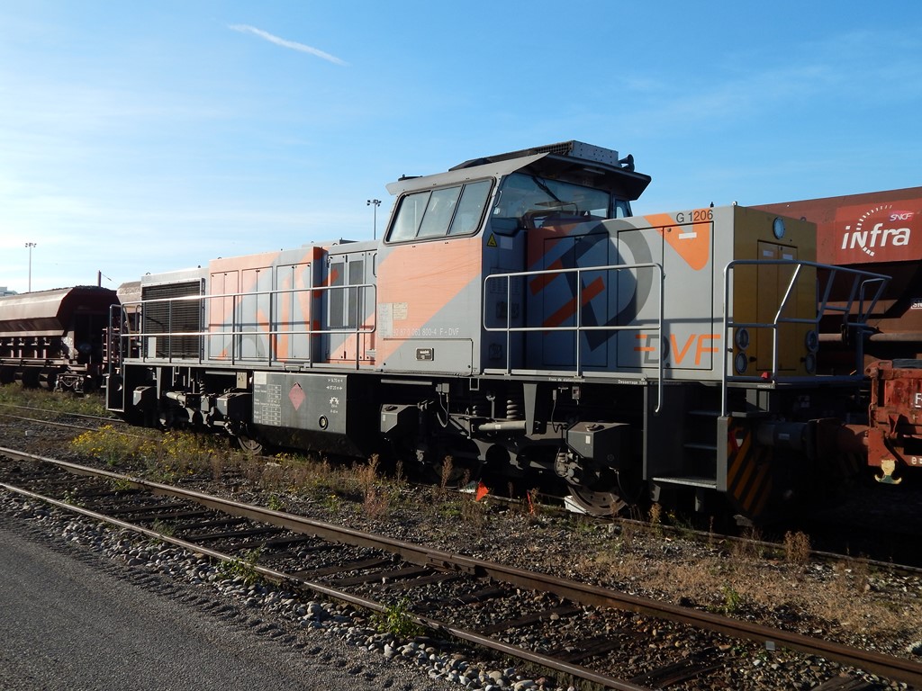 Voici une nouvelle pour le Forum avec la G 1206 BB 5702105 - 99 87 9 181 545-4 F-DVF (DVF - Dijonnaise de Voies Ferrés SAS, à Chevigny-Saint-Sauveur) mise en service en juillet 2014