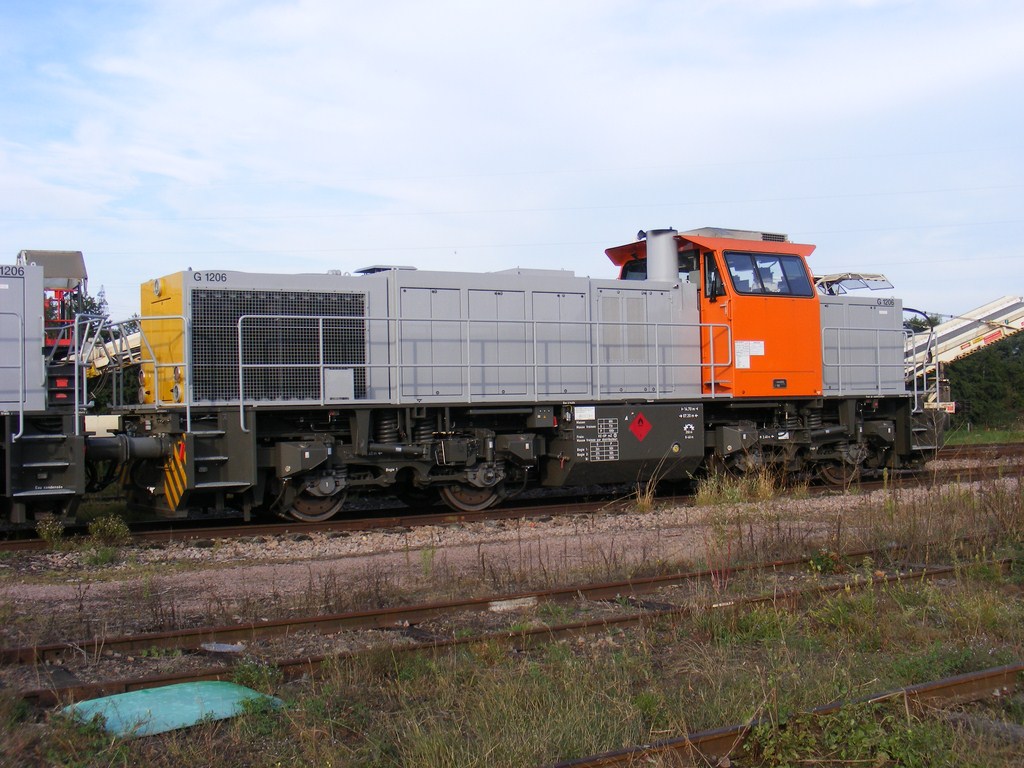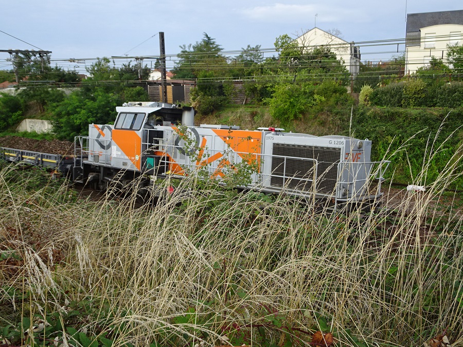 L'engin en UM avec le G 1206 1913 DFV en pousse d'un TTX garé à Agde.