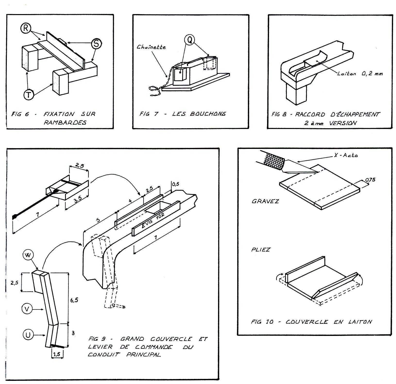 Il s'agit principalement des pièces horizontales fixées sur les capots et supportant les conduits (elles sont trop souples, ce qu'on voit sur la photo, et mériteraient d'être remplacées par des profilés métalliques), et de la barre d'attelage à réaliser également dans une matière un peu plus rigide.
