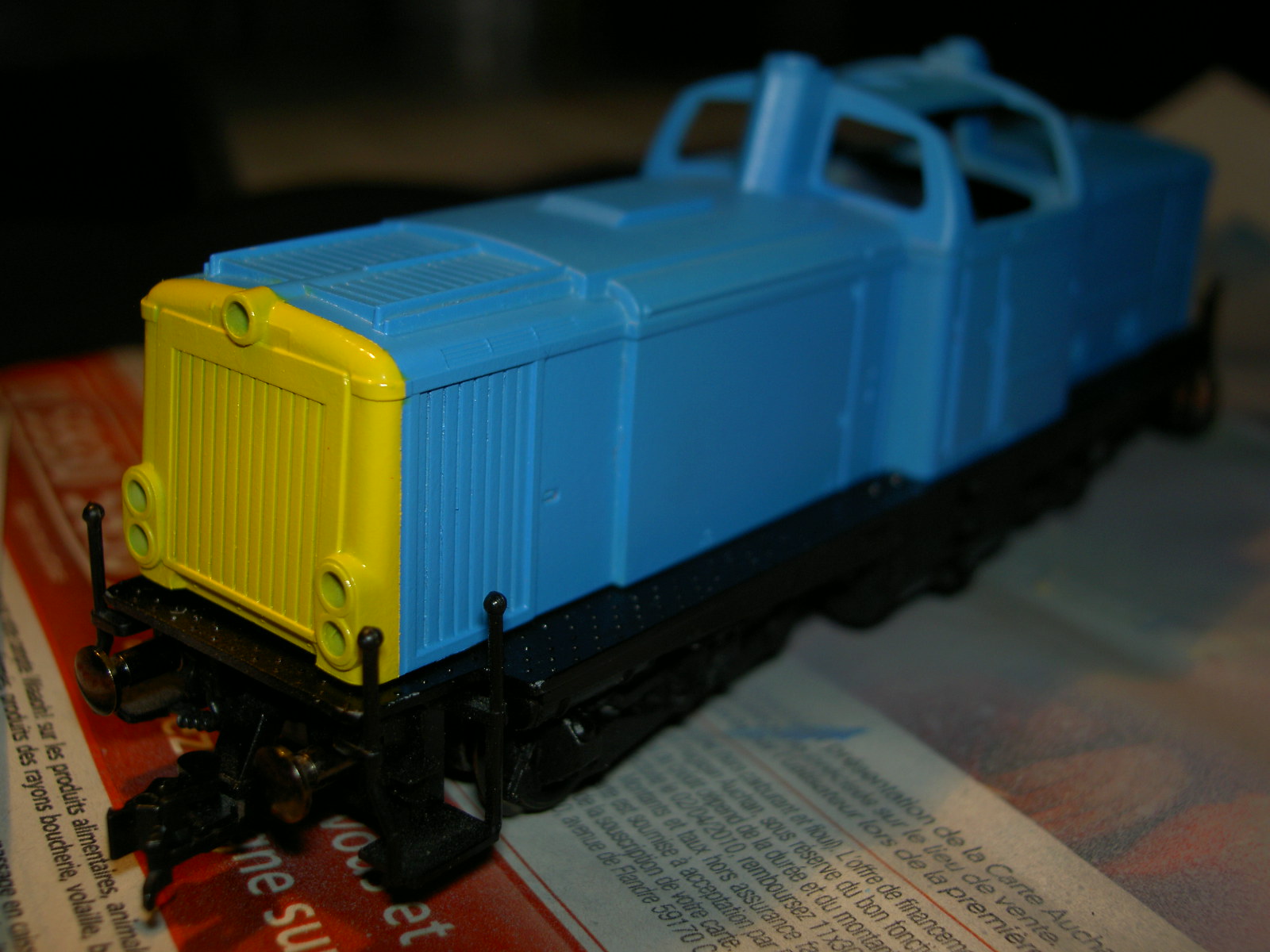 Merci, et j'ai utilisé une painture tamiya (bleu X14 il me semble) appliqué à l'aero.