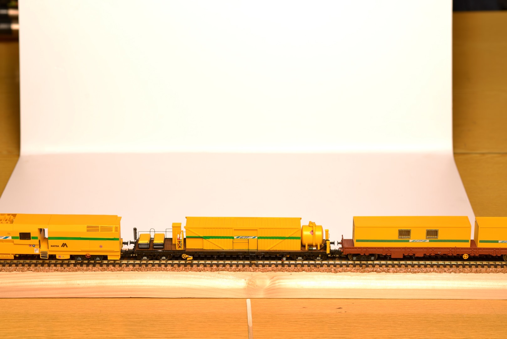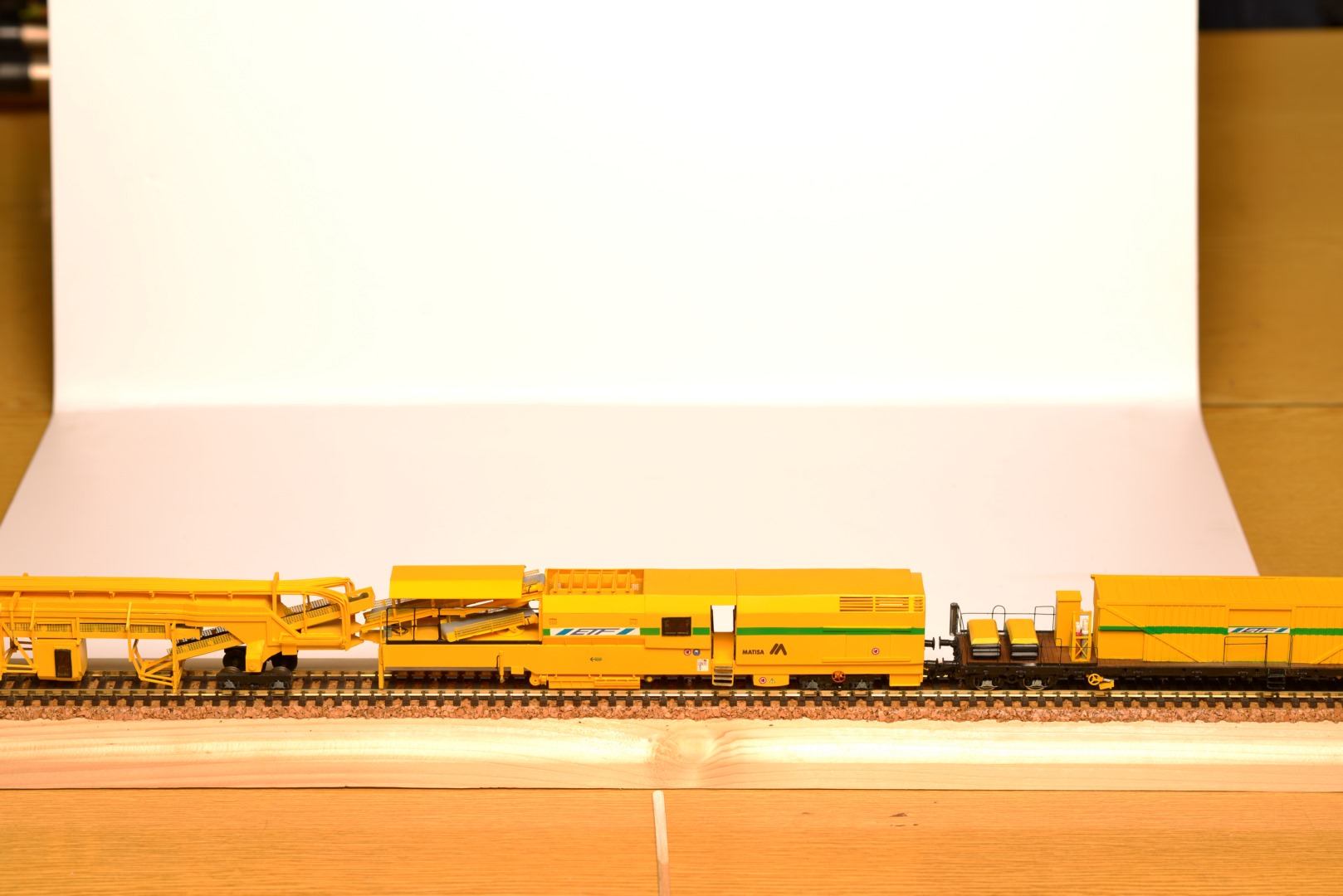 Suite Wagon 5 - Wagon WF (Wagon force avec poutre : évacuation du ballast, enlèvement des anciens rails et pose de nouveaux longs rails soudés)