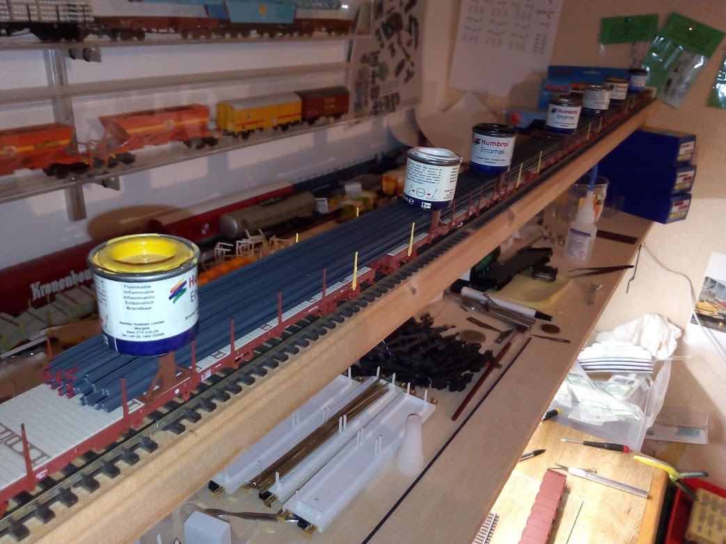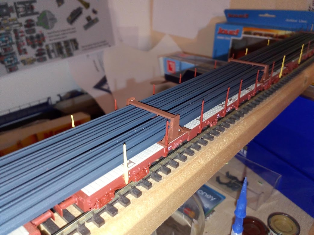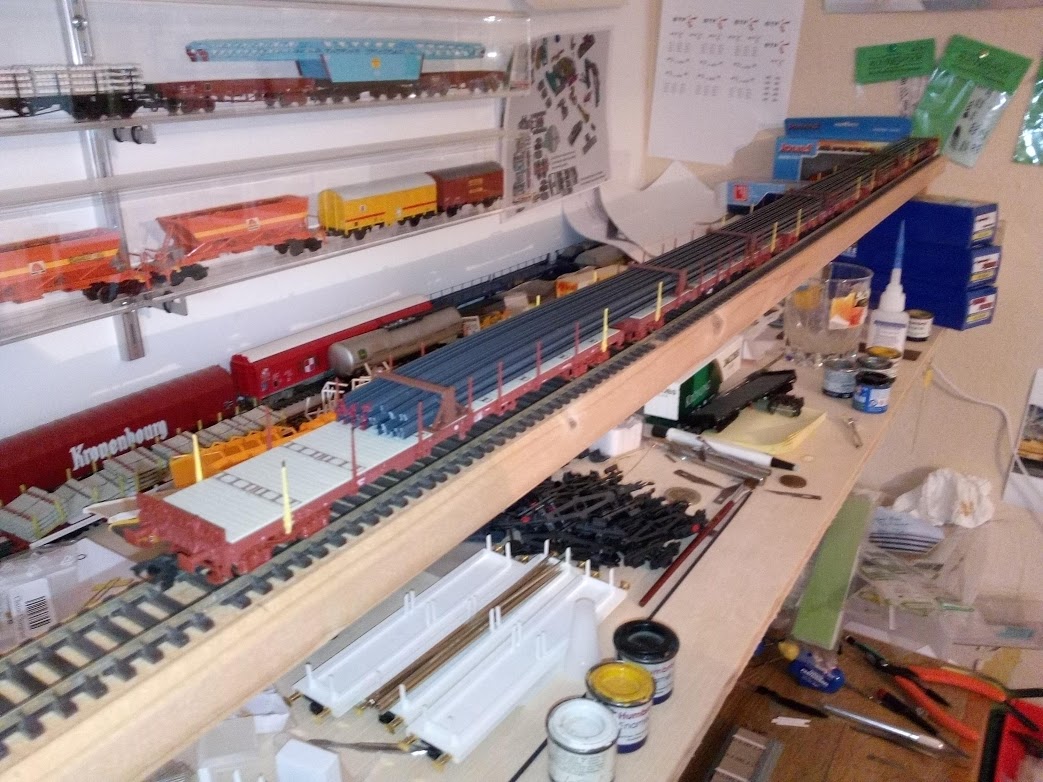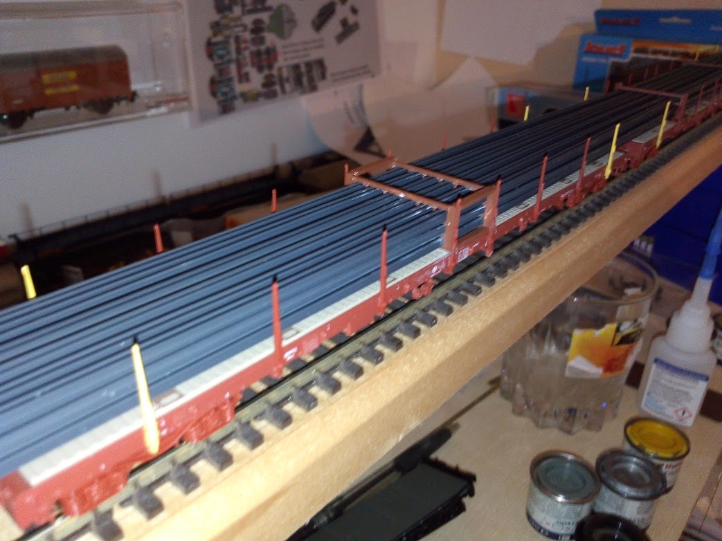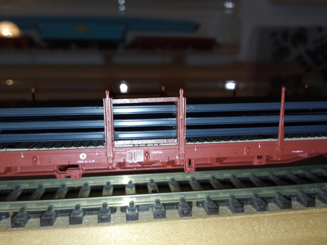 la rame est formé de 5 wagons type RS chargé de rail Maketis
