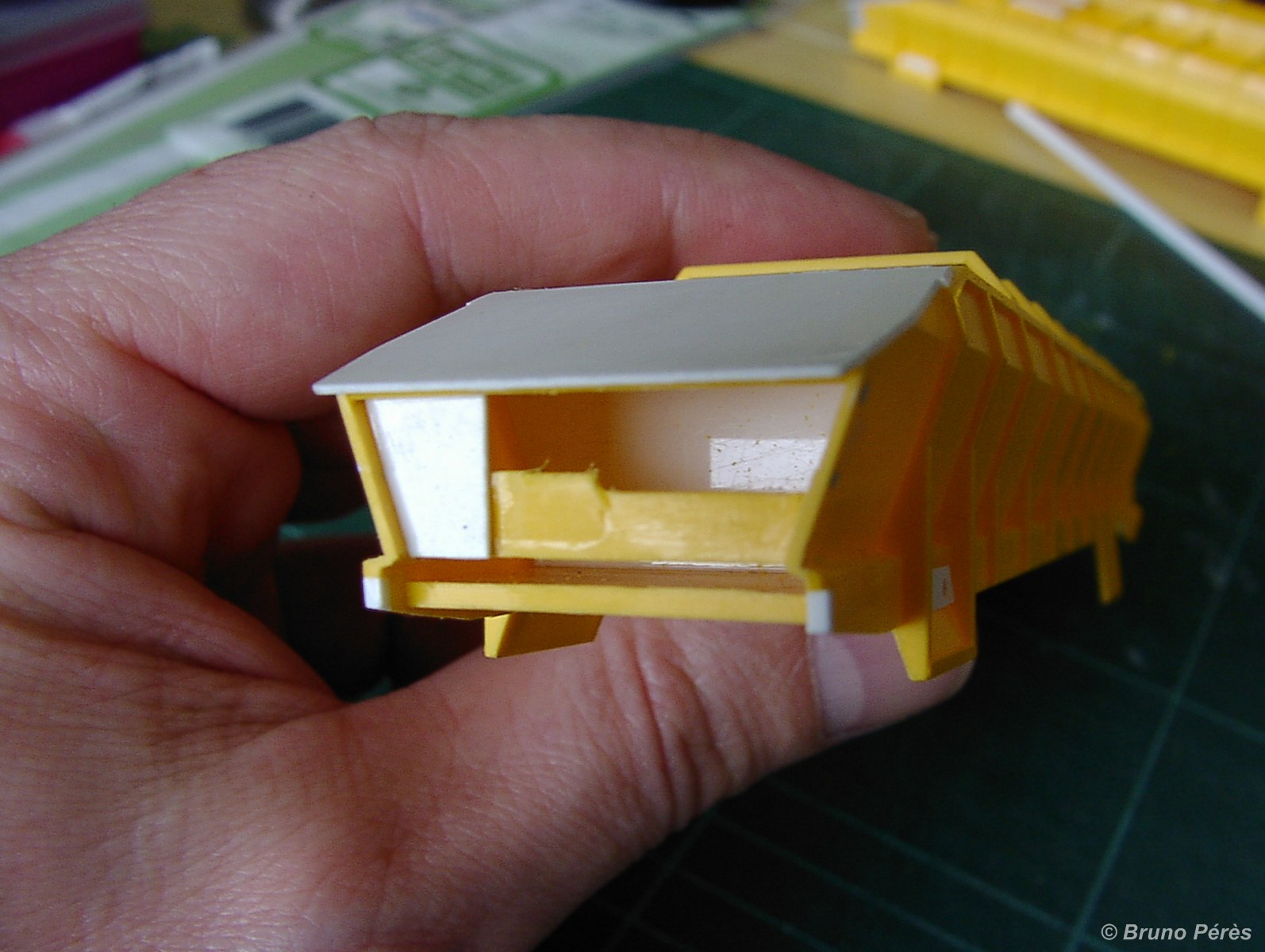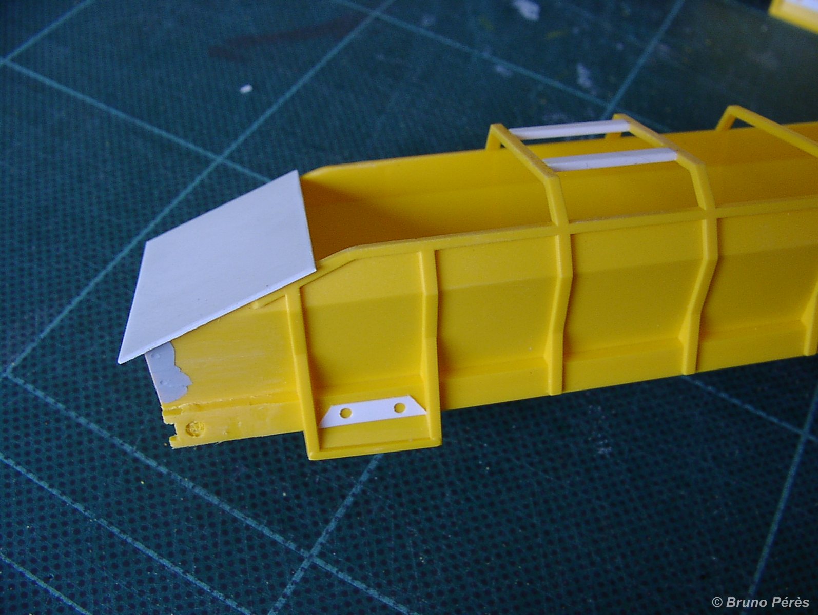 Collez un profilé Evergreen (0,25 x 1 x 4,5) sur la partie basse de la la pièce barrant horizontalement la trémie, en alignement du seul relief que vous aurez laissé.
