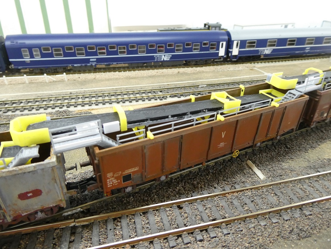 j'ai été séduit par la production de la société "modélisme-impression 3d" concernant la reproduction de convoyeurs - coordonnées de son site : https://www.facebook.com/modelismeimpression3d - Cette production reproduit des tapis de construction ETF, mais peut constituer une très bonne base de travail pour des tapis COLAS, comme ce sera le cas pour une portion de ma rame de dégarnissage ; avant que d'envisager une adaptation à étudier pour TSO.