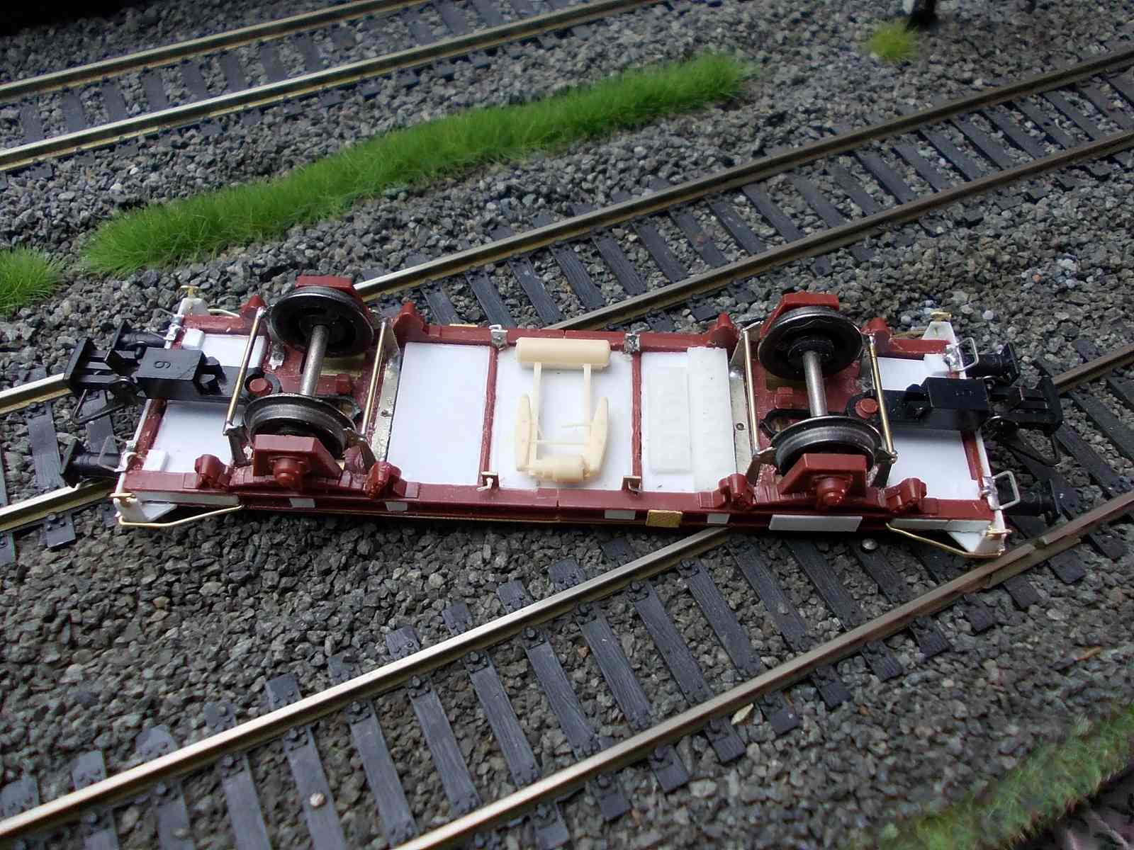 De construction assez simple voici le wagon raccord,qui servait à une époque entre autres tâches,attelé au graisseur de caténaires,de protéger les machines des éventuelles projections de graisse.