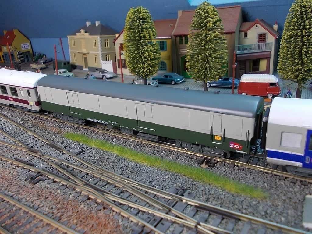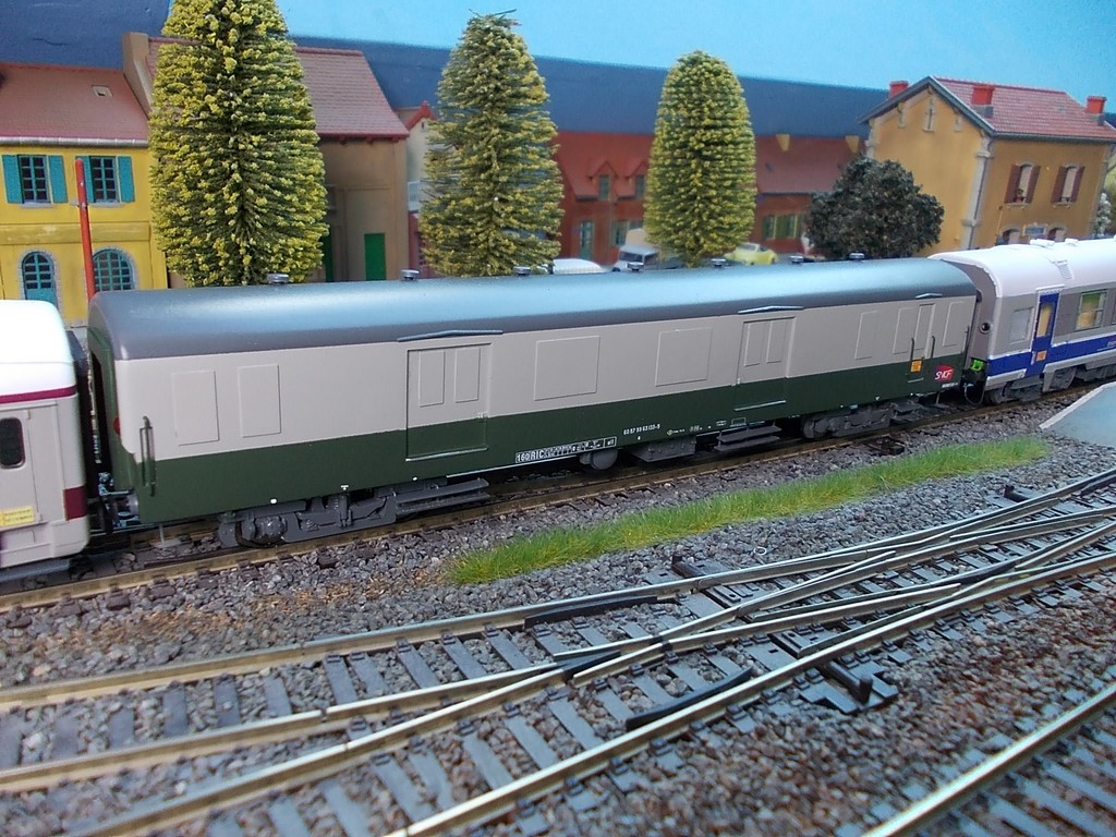 Voici un fourgon de charge souvent incorporé dans les trains de mesures,réalisation toute simple sur une base de fourgon Dev Jouef.La livrée sera en gris 804 et vert 302